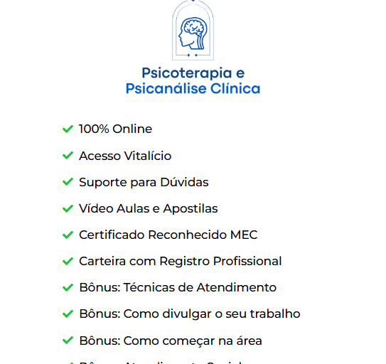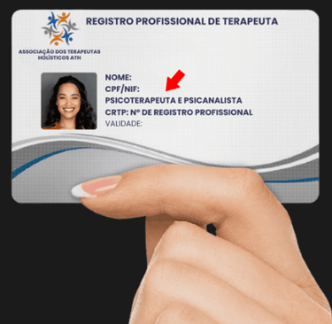 Todos os alunos que se inscreverem para essa nova turma, além do certificado, também terão direito a Carteira com Registro Profissional de Psicoterapeuta e Psicanalista emitida pela Associação dos Terapeutas ATH.
